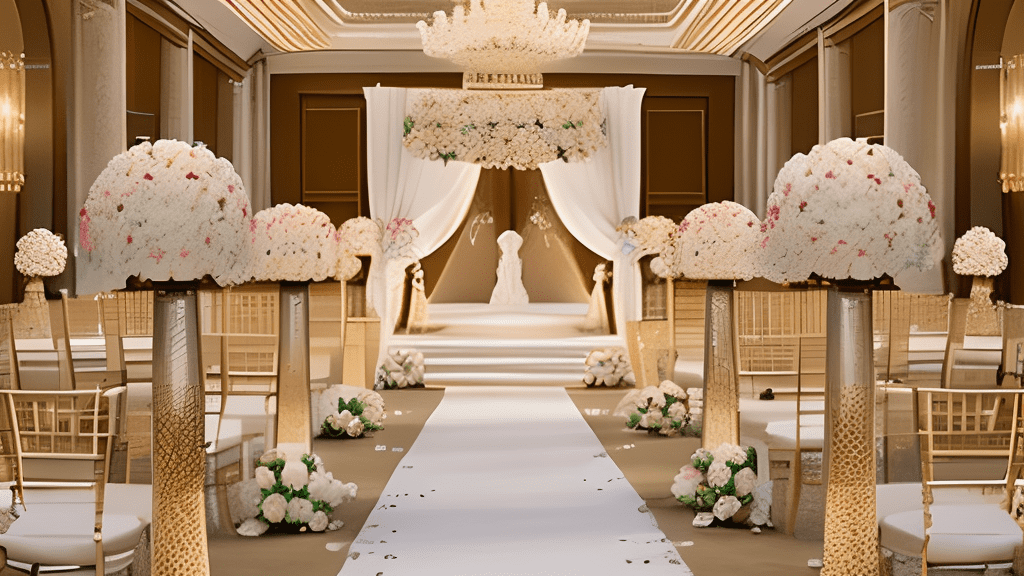 Indoor venues often require less decoration due to their existing architecture and design. Many indoor venues have elegant features such as chandeliers, grand staircases, or ornate ceilings that can serve as focal points for the decor. Couples can enhance these existing elements with minimal additional decor, such as floral arrangements or drapery.